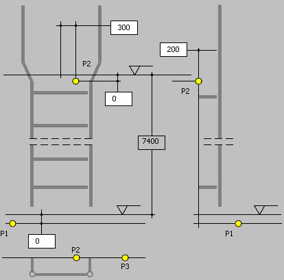 - In the drawing area, click to specify 3 points defining the ladder location (P1, P2, and P3 as shown above).