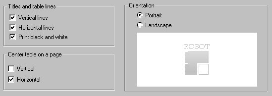 After you select Page setup from the selection tree in the left part of the Table printout manager dialog, the options shown below display on the right.