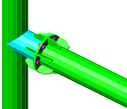 Using the Pipes T - fixed steel connection type, you can connect pipes positioned perpendicularly to each other (main pipe and secondary pipe) with either a bolted or a welded connection.