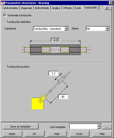 If Generate turnbuckle is not selected, a turnbuckle will not be generated. In order to generate a turnbuckle and define parameters of a connection, select Generate turnbuckle.