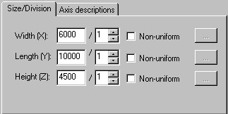 After you select Box as a workframe type, the Workframe dialog contains 2 tabs: Size/Division and Axis descriptions.