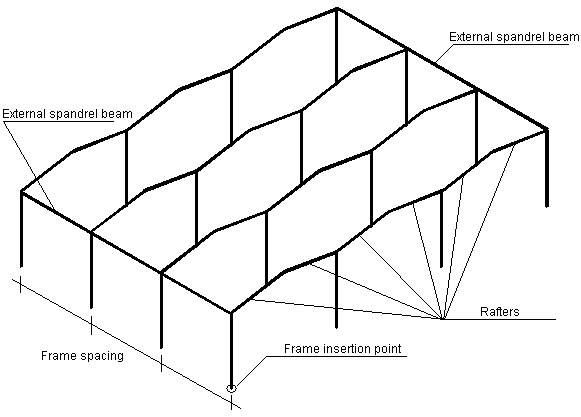 You can define geometry of a 3D multispan frame.