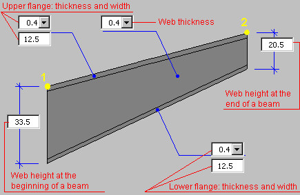 - Thickness and width of the lower flange (these values are constant along the beam length)