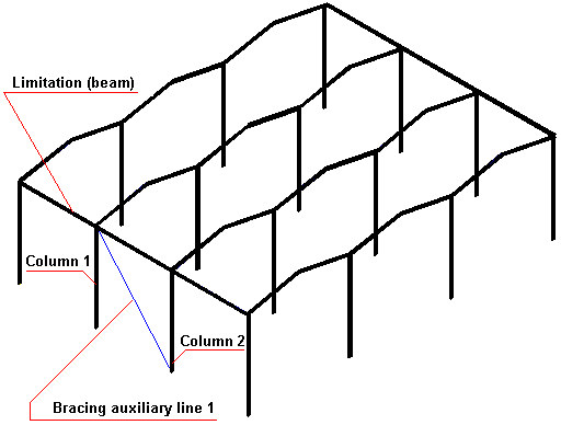 - In the drawing area, select bracing lines, columns, and objects that define vertical limitations to define the position of frame bracings (see the drawing below).