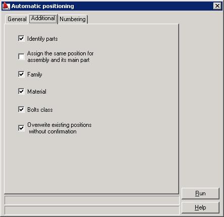 On the Additional tab of the Automatic positioning dialog, you can specify parameters to be considered during the positioning operation.