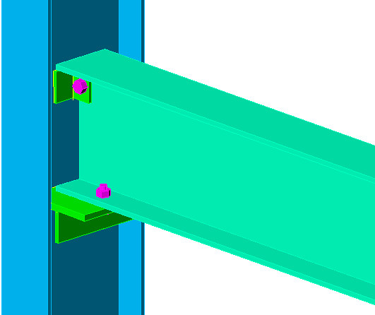 Using the beam/column web with T seat profile steel connection type, you can connect the column web to a beam by means of a seat profile (a T-section).