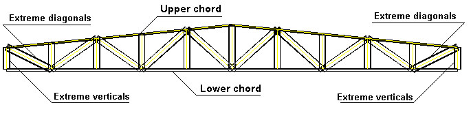 Six groups of bars can be distinguished in a truss (see the drawing below):