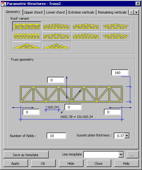 After you finish defining truss dimensions, click the Chords tab to display the Truss - chords dialog.