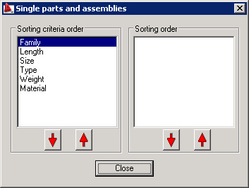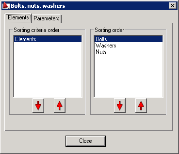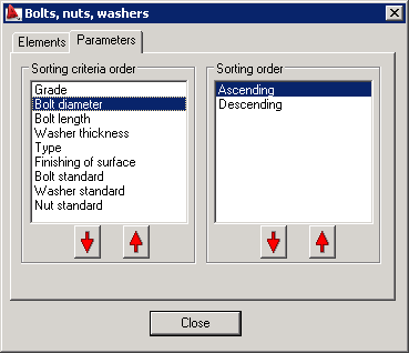 buttons to move the selected parameter up or down the list, thus defining the required sorting order.
