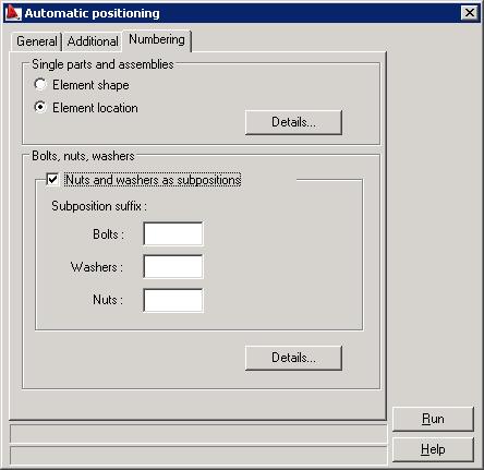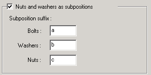 Below on the Numbering tab is the Nuts and washers as subpositions option. It determines the method that positions are assigned to connectors.