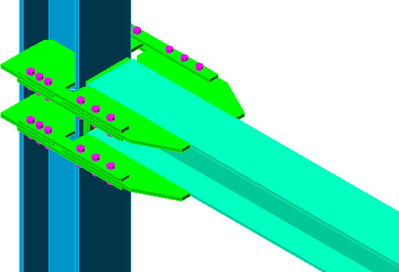 Using the Frame node with horizontal splices steel connection type, you can create a frame node that connects a beam with a column.