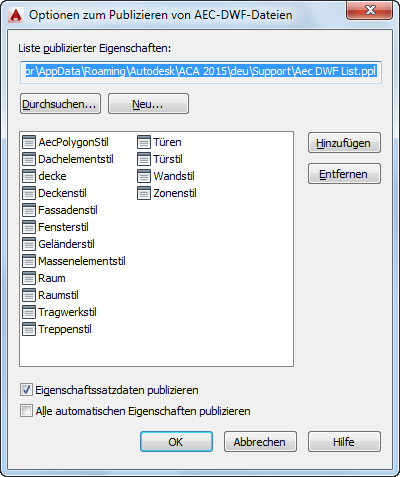 Mit diesen Schritten können Sie eine einzelne DWF- oder DWFx-Datei des derzeit bearbeiteten Modells erstellen, die die benutzerdefinierten Eigenschaftssatzdaten enthält.