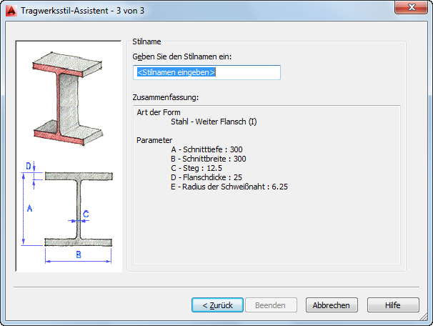 Eingeben eines Namens für den Tragwerksstil