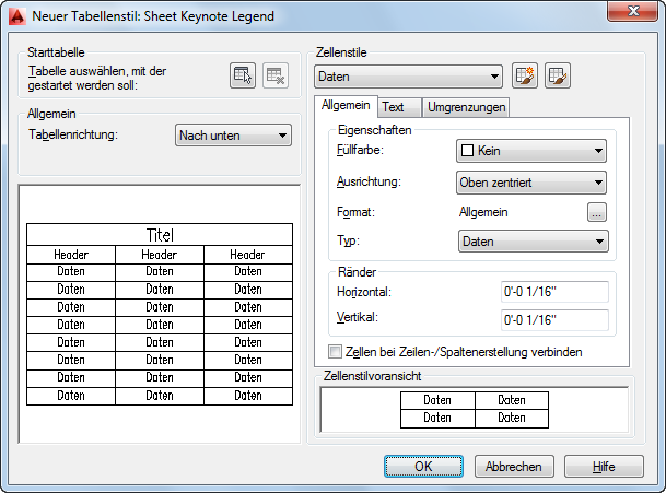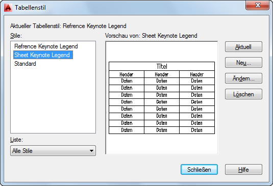 Bauelementlegenden verwenden AutoCAD-Tabellenstile. Gehen Sie wie folgt vor, um die verfügbaren Tabellenstile zu bearbeiten.