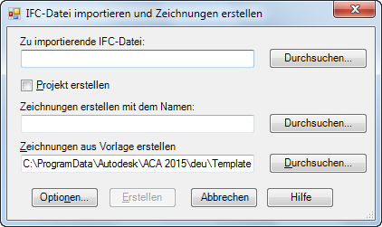 Wenn Sie eine IFC-Datei importieren, werden Zeichnungsdateien erstellt, die den einzelnen Bestandteilen der IFC-Projektstruktur entsprechen. Die Dateien werden zusammen in einer Haupt-Host-Datei referenziert, die die gesamte IFC-Datei darstellt. Beim Importieren wird außerdem eine Protokolldatei erstellt, die Objekte und Informationen zur geografischen Position enthält. Diese Datei wird am gleichen Speicherort wie die importierte IFC-Datei abgelegt. IFC-Dateien können in ein AutoCAD Architecture-Projekt oder als unabhängige Zeichnungen importiert werden.