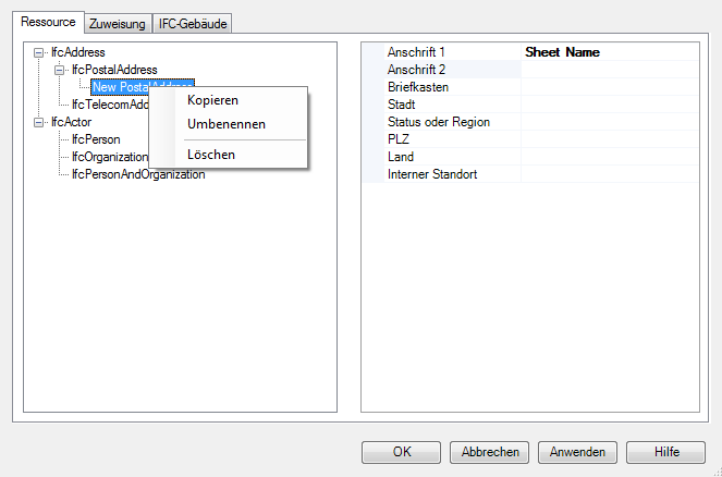 Erstellt eine weitere Instanz der ausgewählten IFC-Ressource. Die Kopie wird automatisch der Liste der IFC-Ressourceninstanzen hinzugefügt.