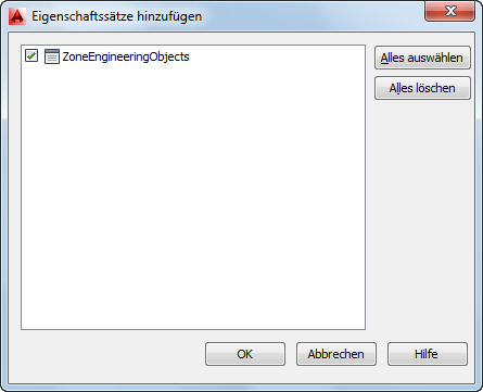 - Wählen Sie im Dialogfeld Eigenschaftssätze hinzufügen die Option ZoneEngineeringObjects, und klicken Sie auf OK.