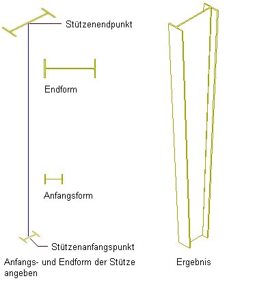 Ein Tragwerk mit einem Segment kann dieselbe Anfangs- und Endform haben, oder Sie geben unterschiedliche Anfangs- und Endformen an. So können Sie z. B. eine abgeschrägte Stütze erstellen, indem Sie einer Stütze mit nur einem Segment eine unterschiedliche Anfangs- und Endform zuweisen.