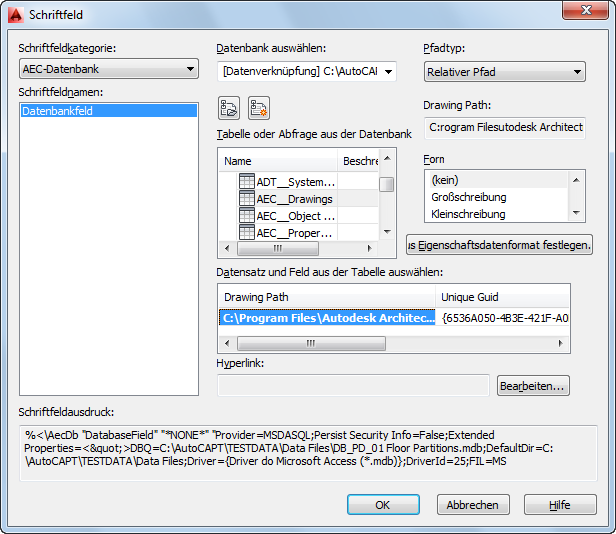 Sie können Daten von einer Vielzahl von Datenquellen mit einer AutoCAD Architecture-Zeichnung verknüpfen. Sie können mit den folgenden Datenbank-Provider eine Verknüpfung zu Datenquellen herstellen: