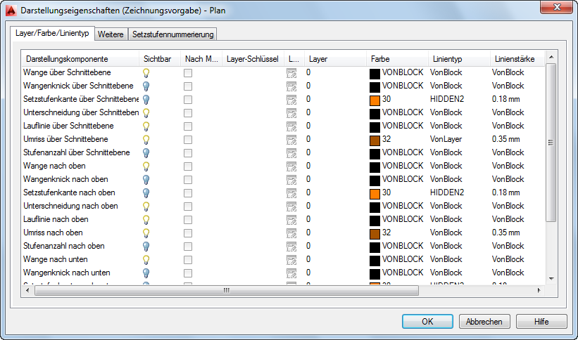 Folgendes Verfahren ist ein Beispiel dafür, wie die Darstellung von Treppenkomponenten in verschiedenen Geschossen eines Treppenhauses festgelegt werden kann.