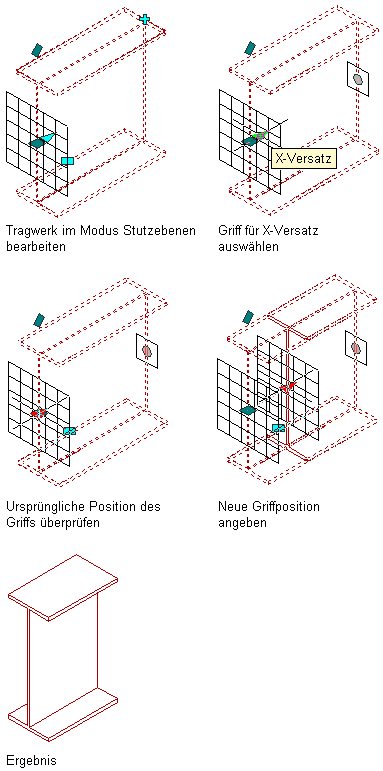 | Versetzen der Stutzebene in X-Richtung entlang der extrudierten Achse des Tragwerks | Geben Sie einen X-Wert für den Versatz ein. |