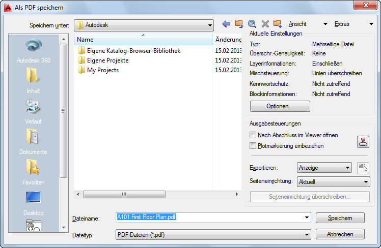 Publizieren von Zeichnungen in PDF