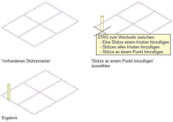 | Hinzufügen einer Stütze an allen Knoten im Raster | Drücken Sie STRG, und klicken Sie. |