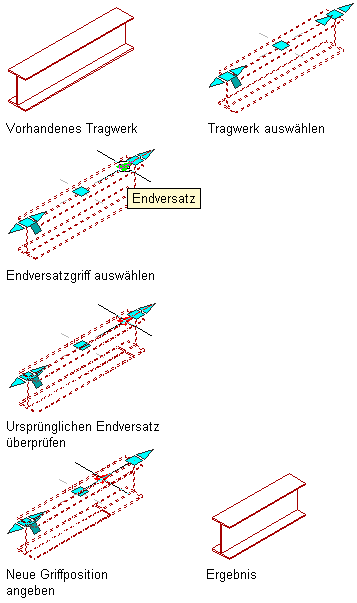 Ändern des Endversatzes eines Unterzugs mit Griffen