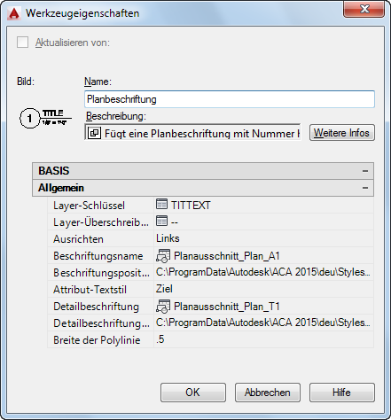 Eigenschaften eines Detailbeschriftungswerkzeugs