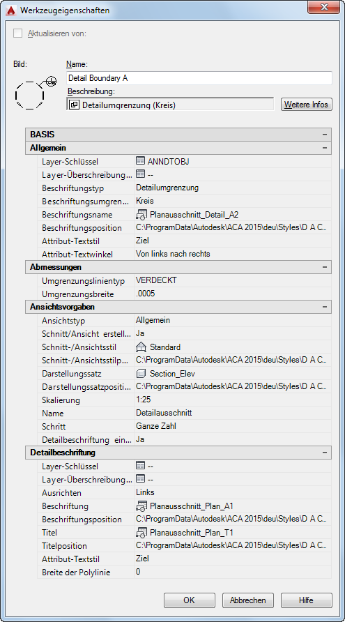 Eigenschaften eines Ansichts-Detailbeschriftung