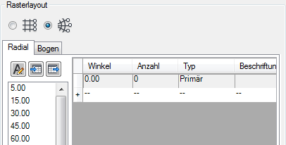 Klicken Sie im Dialogfeld Stützenraster auf das Optionsfeld Radial.