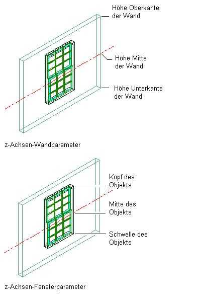 | zur Oberkante der Fenster | Wählen Sie für die Einstellung Zu die Option Sturz des Objekts (bzw. Oberseite des Objekts). |