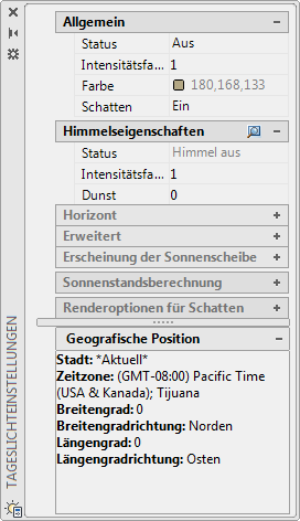 Zeigt die Koordinaten der Richtung der Sonne an. Diese Einstellung ist schreibgeschützt.