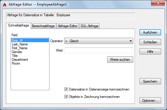 Speichert die Abfrage mit der aktuellen Zeichnung.