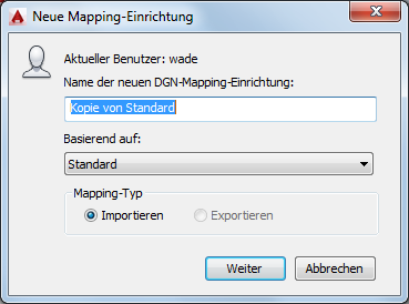 Richtet das Mapping für den Import und Export von DGN-Dateien ein.