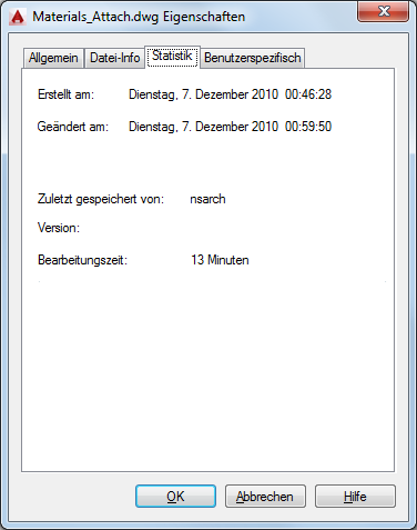 Registerkarte Statistik (Dialogfeld Zeichnungseigenschaften)
