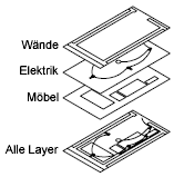 Layer werden verwendet, um Objekte in einer Zeichnung nach Funktion zu gruppieren und die Einhaltung von Standards für Farbe, Linientyp, Linienstärke und andere Eigenschaften zu erzwingen.