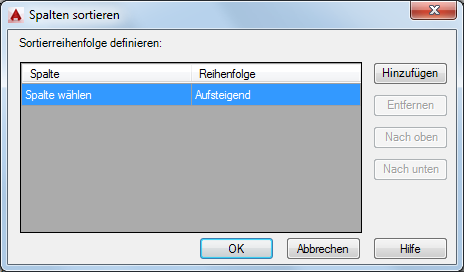 Fügt der Liste Spalte ein neues Element für die Sortierkriterien hinzu.