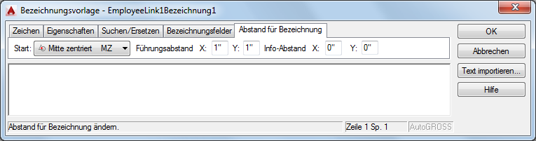 Definiert den Abstand in X- und Y-Richtung für den Einfügepunkt der Bezeichnung sowie gegebenenfalls des zugehörigen Führungsobjekts.