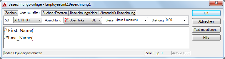 Doppelklicken Sie auf eine Bezeichnungsvorlage im dbConnect-Manager. Auf diese Weise wird das Dialogfeld Bezeichnungsvorlage direkt geöffnet, ohne dass zunächst das Dialogfeld Neue Bezeichnungsvorlage angezeigt wird.