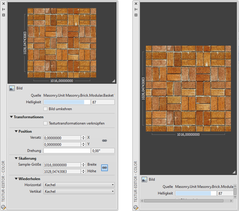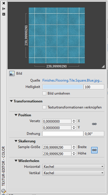 Wenn Sie die Änderungen der Eigenschaften für Position, Skalierung und Wiederholen, die Sie an der aktuellen Textur vornehmen, auf andere Texturen in demselben Material anwenden möchten, wählen Sie die Option Textur-Transformationen verknüpfen.