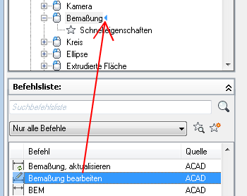 - Wenn Sie den aktuell zugewiesenen Befehl für die Doppelklickaktion ersetzen möchten, ziehen Sie einen Befehl aus dem Bereich Befehlsliste auf die Doppelklickaktion im Bereich Anpassungen in <Dateiname>.