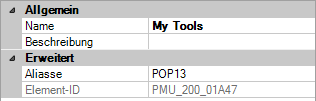 Anmerkung: Sie können den Anzeigenamen eines Befehls ändern, nachdem er einem Pulldown-Menü hinzugefügt wurde. Auf diese Weise können Sie die Anzeige des Pulldown-Menüelements steuern sowie festlegen, wie über die Tastatur-Navigation mit der ALT-Taste darauf zugegriffen werden kann. Wählen Sie dazu das Pulldown-Menüelement unter dem Pulldown-Menü aus, und ändern Sie dann die Eigenschaft Name im Bereich Eigenschaften.