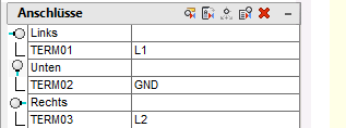 Geben Sie im Bereich Anschlüsse "GND" als Wert für KLEMME02 ein, und "L2" als Wert für KLEMME03.