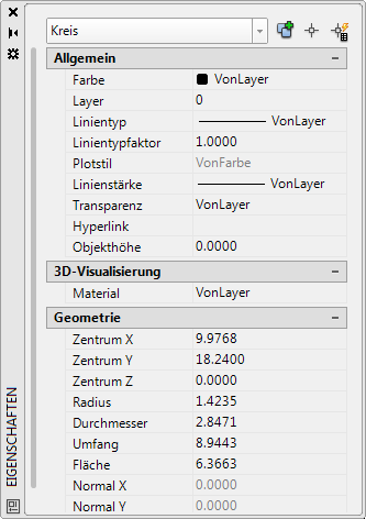 Wenn Sie die Eigenschaften von AutoCAD-Objekten in AutoCAD LT anzeigen, sind einige Eigenschaften möglicherweise nicht verfügbar.