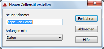 Gibt einen Namen für einen neuen Zellenstil sowie einen vorhandenen Zellenstil an, auf dem der neue Stil basieren soll.