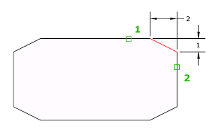 Wenn die ausgewählten Objekte Liniensegmente einer 2D-Polylinie sind, müssen sie nebeneinander liegen oder dürfen durch maximal ein Segment voneinander getrennt sein. Wenn sie durch ein anderes Polyliniensegment getrennt sind, wird durch FASE das Segment, das sie trennt, gelöscht und durch die Fase ersetzt.