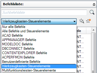 Im Bereich Befehlsliste wird nur eine Liste mit Werkzeugkasten-Steuerelementen angezeigt.