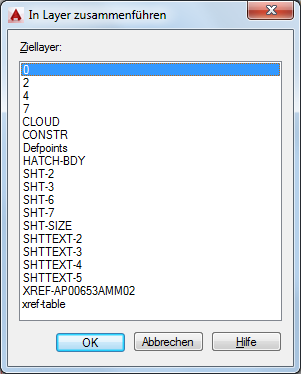 Zeigt eine Liste der Layer an, auf denen die ausgewählten Layer oder Objekte zusammengeführt werden können.