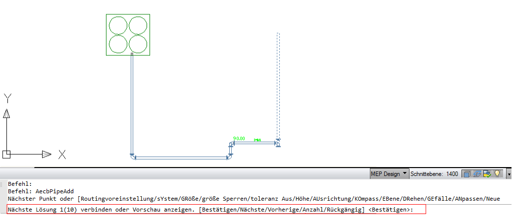 Tipp: Wenn Sie eine Verbindung zu einem Objekt mit einer anderen Rohrgröße oder einer anderen Routing-Voreinstellung herstellen, werden Sie eventuell aufgefordert, ein Teil für die Verbindung zum zweiten Objekt auszuwählen.